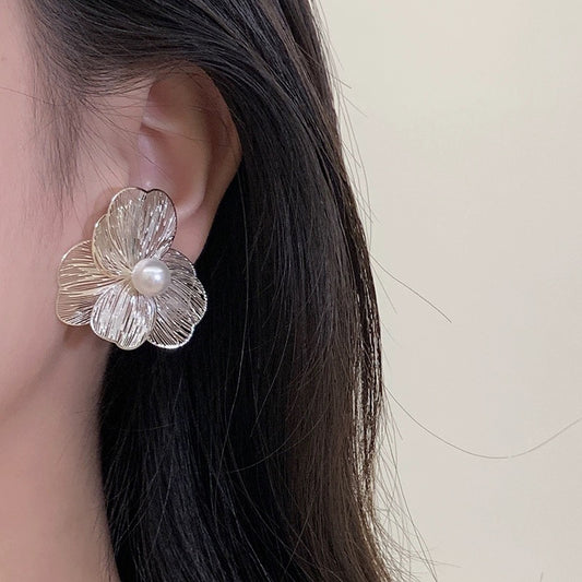 Vintage Gold Asymmetric Flower Petal Pearl Earrings – Jewelry for Women/Party/Girl friend