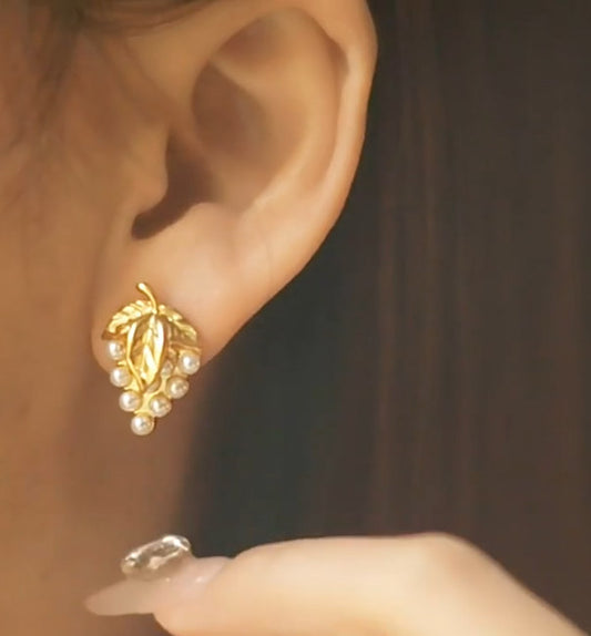Grape Pearl Cluster Earrings with Gold-Plated Finish