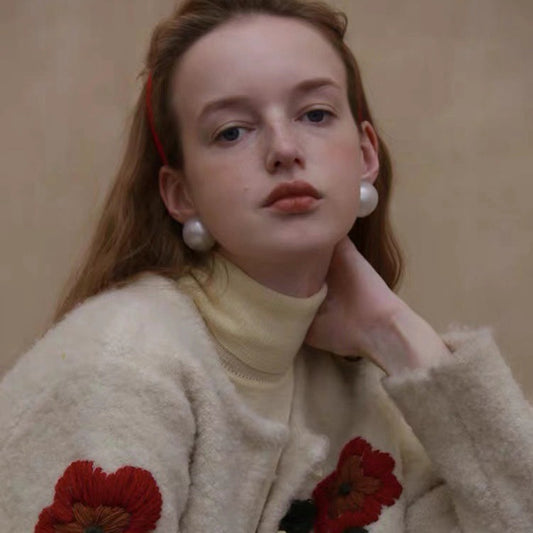 Handmade S925 Silver Big Cotton Pearl Stud Earrings for daily wear/wedding/party