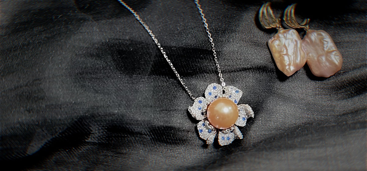 Elegant Necklace with Natural Pearls, Onyx, and Shell Pendant
