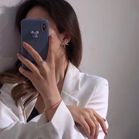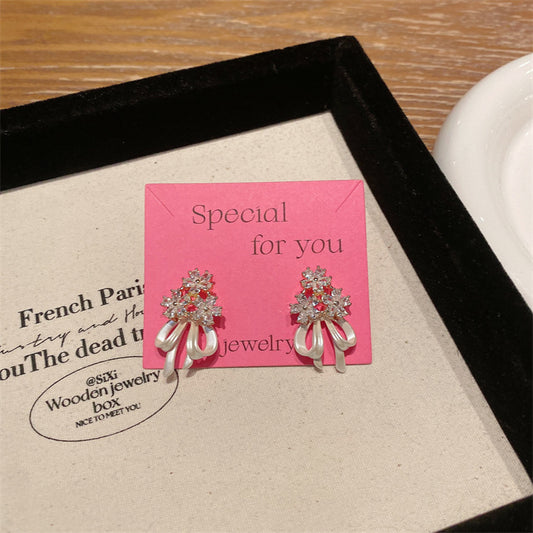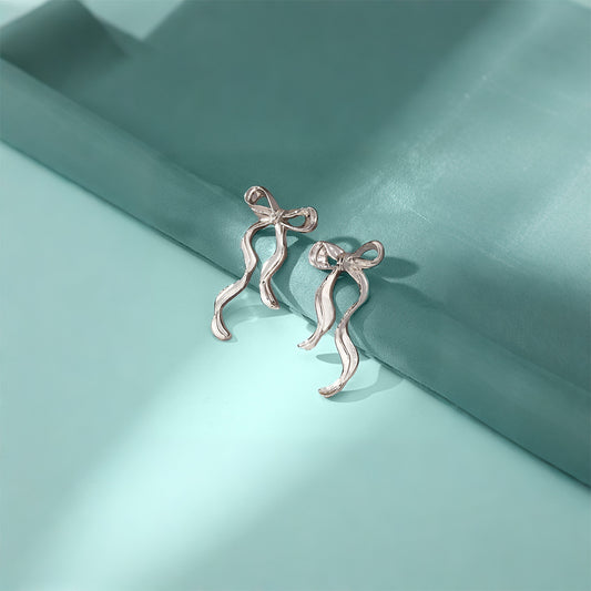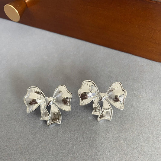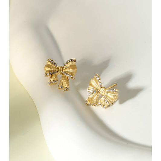 S925 Silver Brushed Zircon Bow Knot Stud Earrings