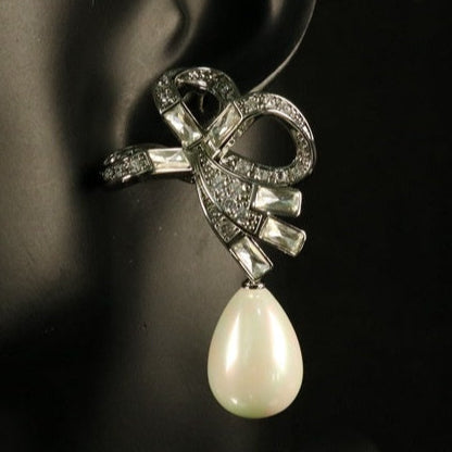 Diamond-Embellished Teardrop Shell Bow Drop Earrings