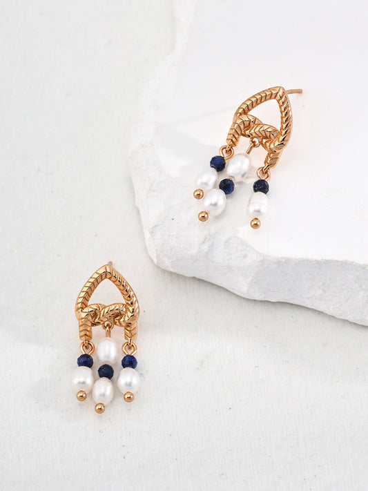 Lapis Lazuli & Pearl Beaded Heart Knot Drop Earrings