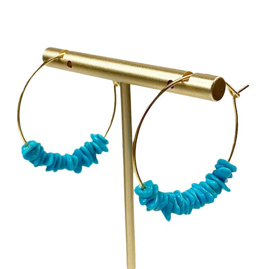 Turquoise Seed Bead Large Hoop Drop Earrings | Blue-Green Turquoise Hoop Jewelry