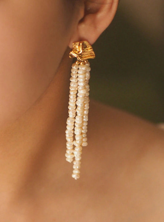 Elegant Tassel Pearl Drop Earrings - 925 Sterling Silver
