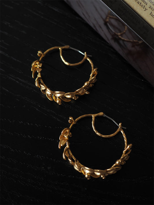 Vintage Hollow Flower Wheat Hoop Earrings Drop Earrings