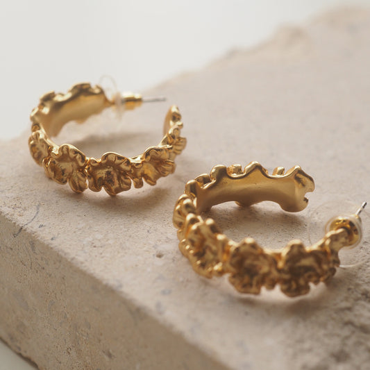 Vintage Gold-Plated Floral Hoop Earrings