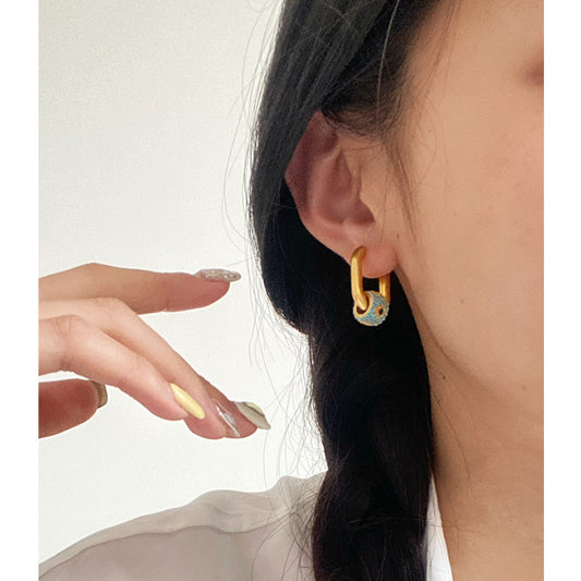 Vintage Black Enamel Zircon Pendant Hoop Earrings – S925 Sterling Silver with Gold Finish