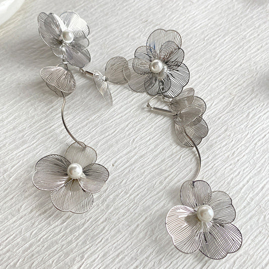 Camellia Pearl Drop Earrings with 18K Gold-Plated Hollow Flower Design