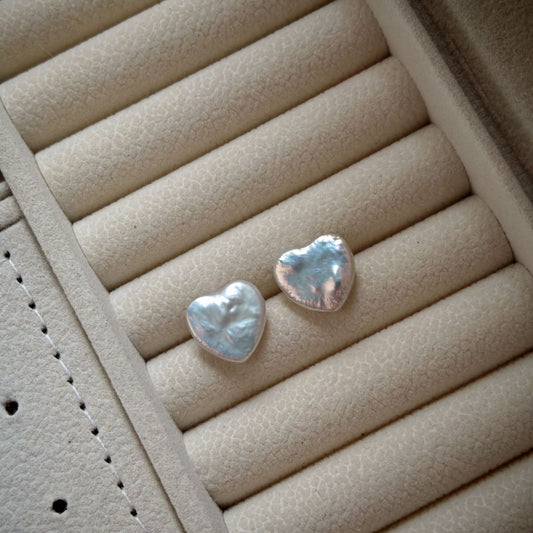 Baroque Heart-shaped Pearl Stud Earrings -Romantic Jewelry in 925 Sterling Silver