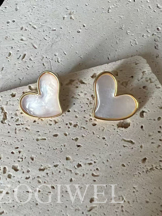 Mother of Pearl Stud Heart Earrings