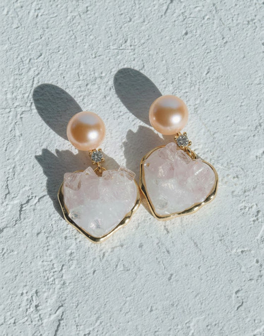 Rose Heart Drop Earrings with Freshwater Pearl