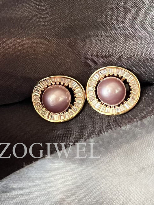 Baroque Freshwater Pearl Stud Earrings with Diamond - Elegant Pearl Jewelry for Women