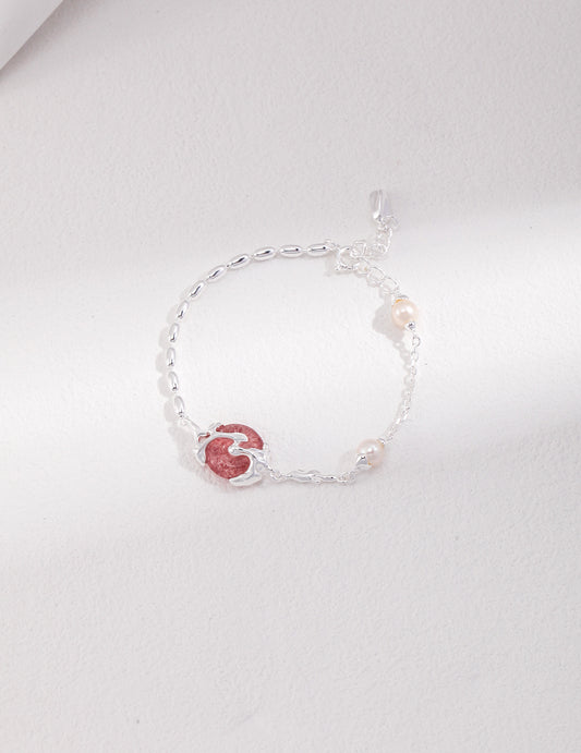 Elegantes Armband aus Naturperlen und Rhodochrosit aus S925 Sterlingsilber
