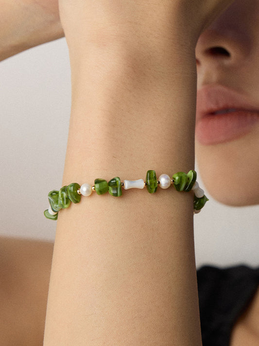 Armband aus smaragdgrüner Perle und Perlmutt aus S925 Sterlingsilber