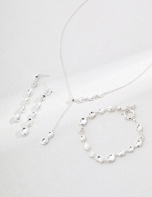 Silbernes Schmuckset - Tropfenohrringe & Halskette & Armband