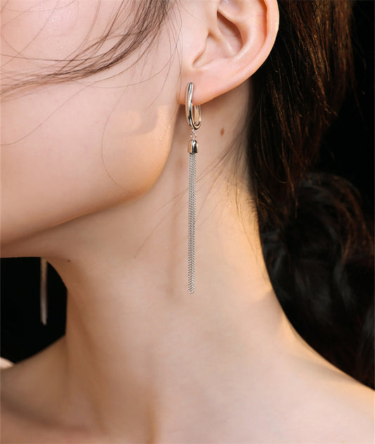 S925 Sterling Silber Lange Quaste Funkelnde Ohrringe