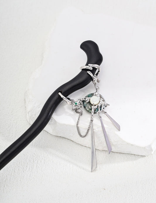 Neue Haarnadel aus Wassergras-Achat und lila Sandelholz im chinesischen Stil