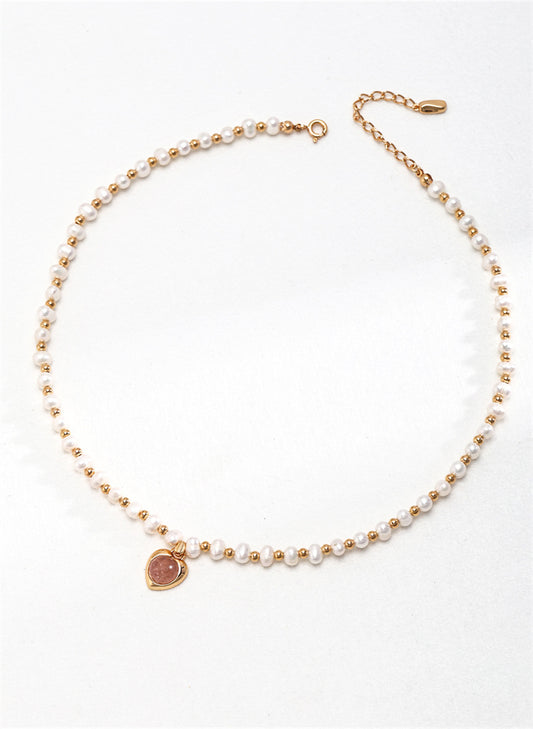 Halskette aus Naturperlen mit rosa Herzanhänger