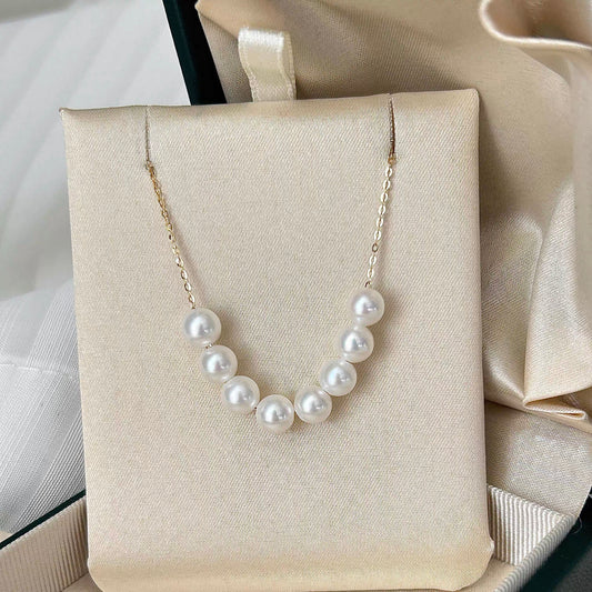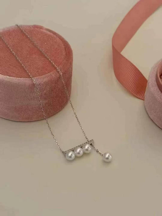 Shooting Star Akoya Pearl Necklace – 4-8mm Dainty Sterling Silver Jewelry for Women, Wedding, Anniversary Gift