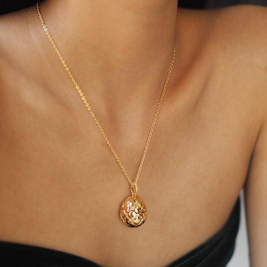 Vintage Lattice Egg Pendant Necklace with Heart Gem – Gold-Plated, Openable Design