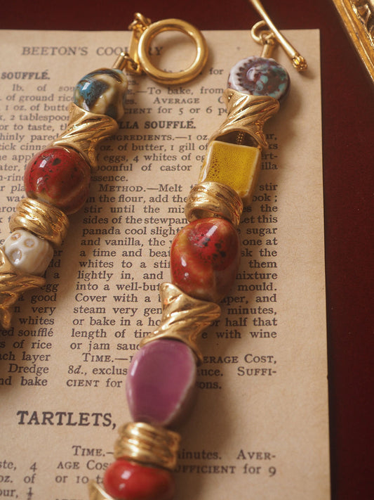 Vintage Ceramic Glass Bead Necklace – Multi-Color Gemstone Style, Retro Design