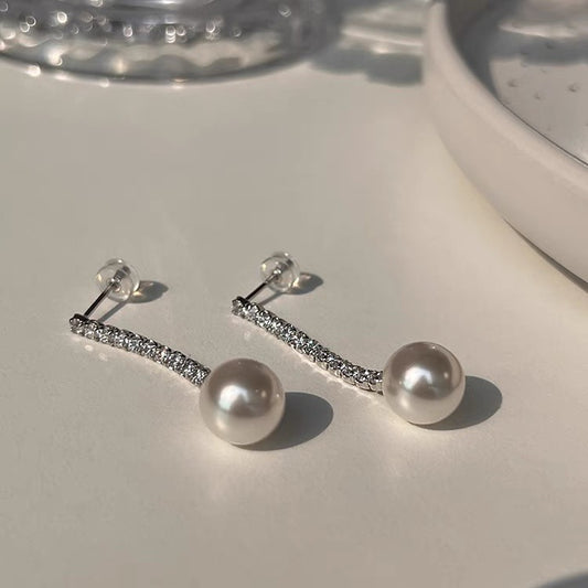 Classic Round Freshwater Pearl Long Drop Earrings with Zircon