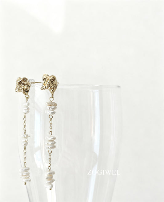 Freshwater Flat Baroque Pearl Drop Earrings with Gold Accents