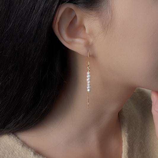 Süßwasserperlen-Ohrhänger mit Goldfaden
