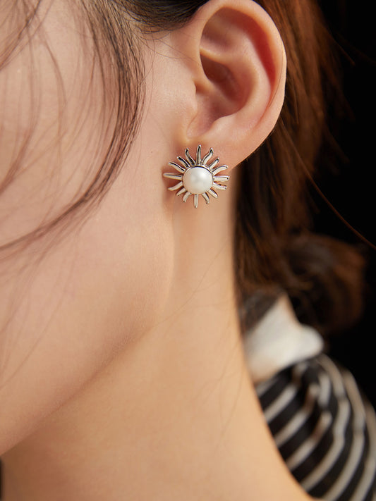 Silber/Gold Perlen Ohrstecker wie Sonne