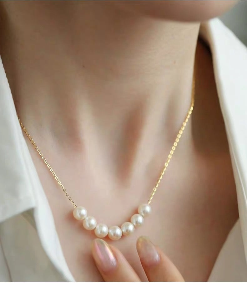 Dainty and delicate, pendant necklaces exude soft femininity that fits flawlessly with a black V-neck down. A pendant necklace not only provides a refined look but also slims down the chest area by drawing the eye to the pendant. This piece includes gorgeous freshwater pearls with a smile curve design that boosts the level of elegance without being overwhelming.