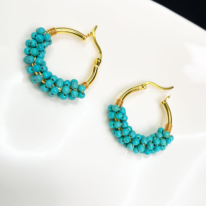 Turquoise Seed Bead Woven Hoop Drop Earrings